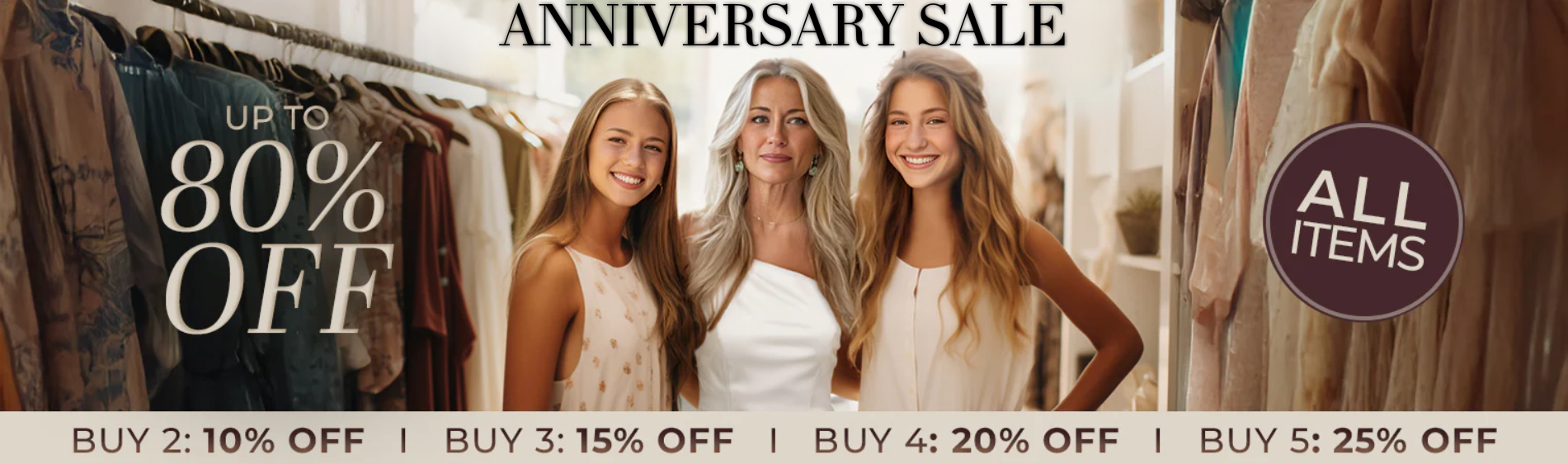 Enjoy our biggest offers yet—up to 80% off storewide. Whether you’ve shopped with us for years or are newly discovering us, now’s the perfect time to find pieces you love at special prices.